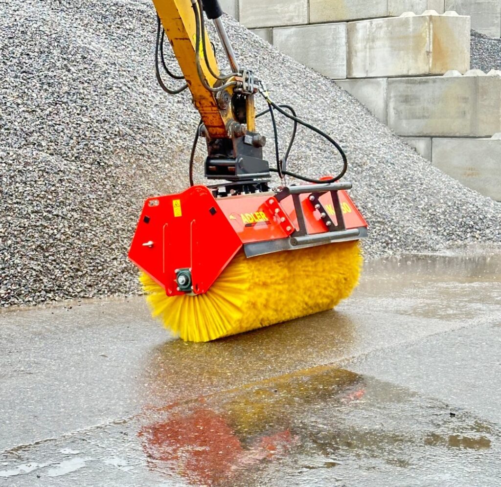 Zamiatarka Adler do koparki pomoże Ci zamiatać place budowy, niezależnie od tego, czy chodzi o budowę dróg, rurociągów, czyszczenie chodników, czy utrzymanie terenu. Dzięki szybkozłączu koparki możesz szybko dostosować i hydraulicznie podłączyć zamiatarkę BK 750/950 – i gotowe!